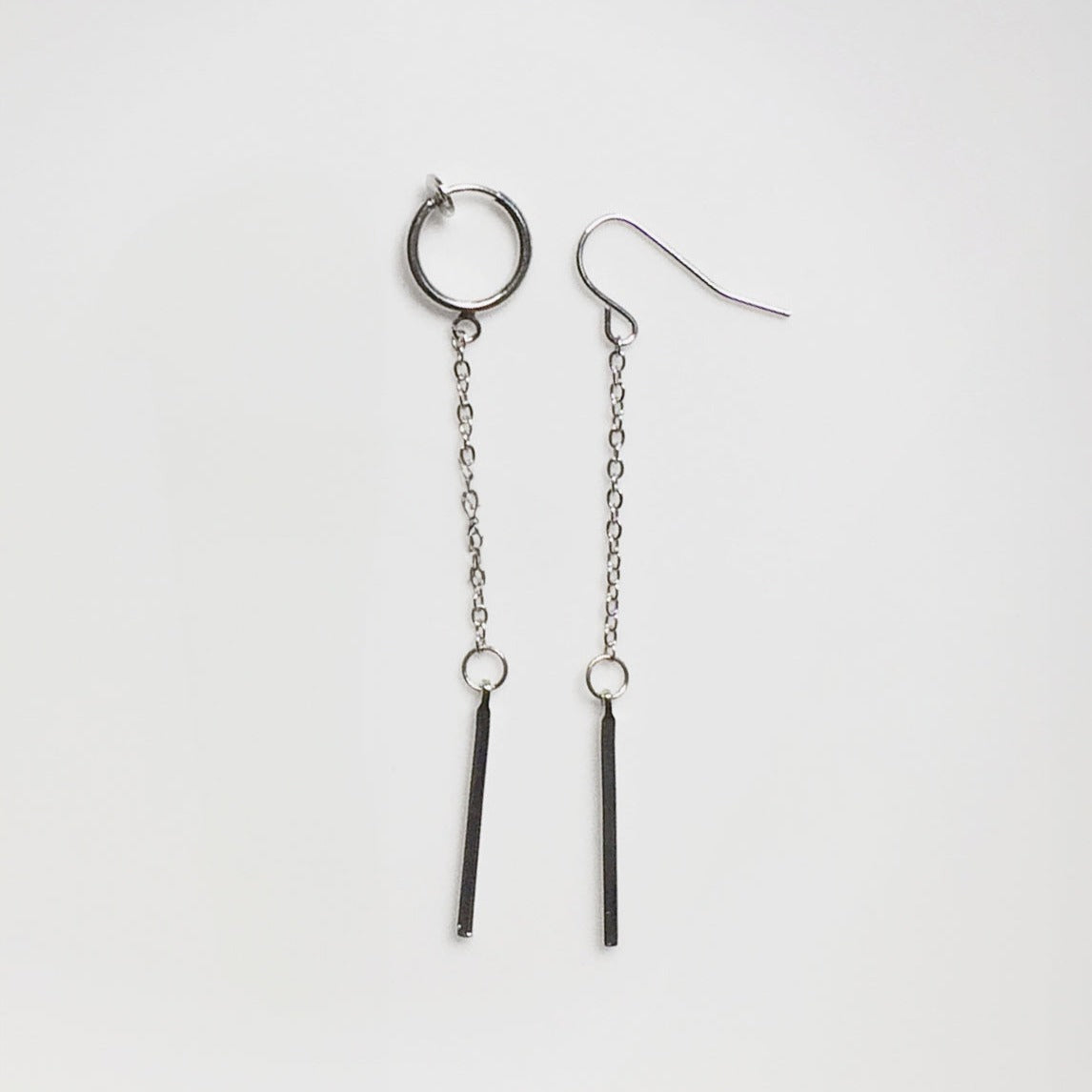 keywords: geometric clip on earrings, clip on dangling earrings, invisible clip on earrings, non pierced earrings, silver clip-on earrings